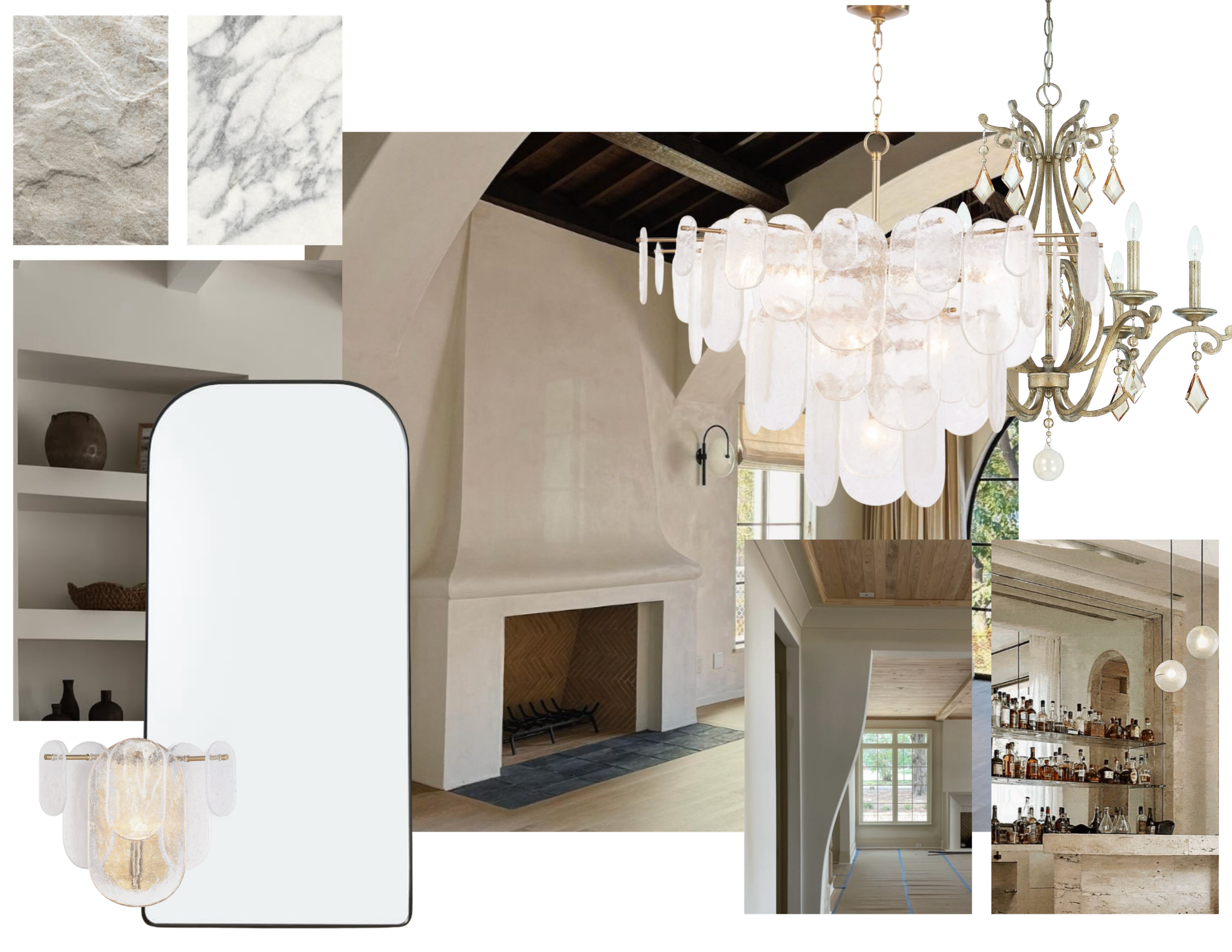 Curved architectural details will be added to soften the space and to create the illusion of room and ceiling separations.