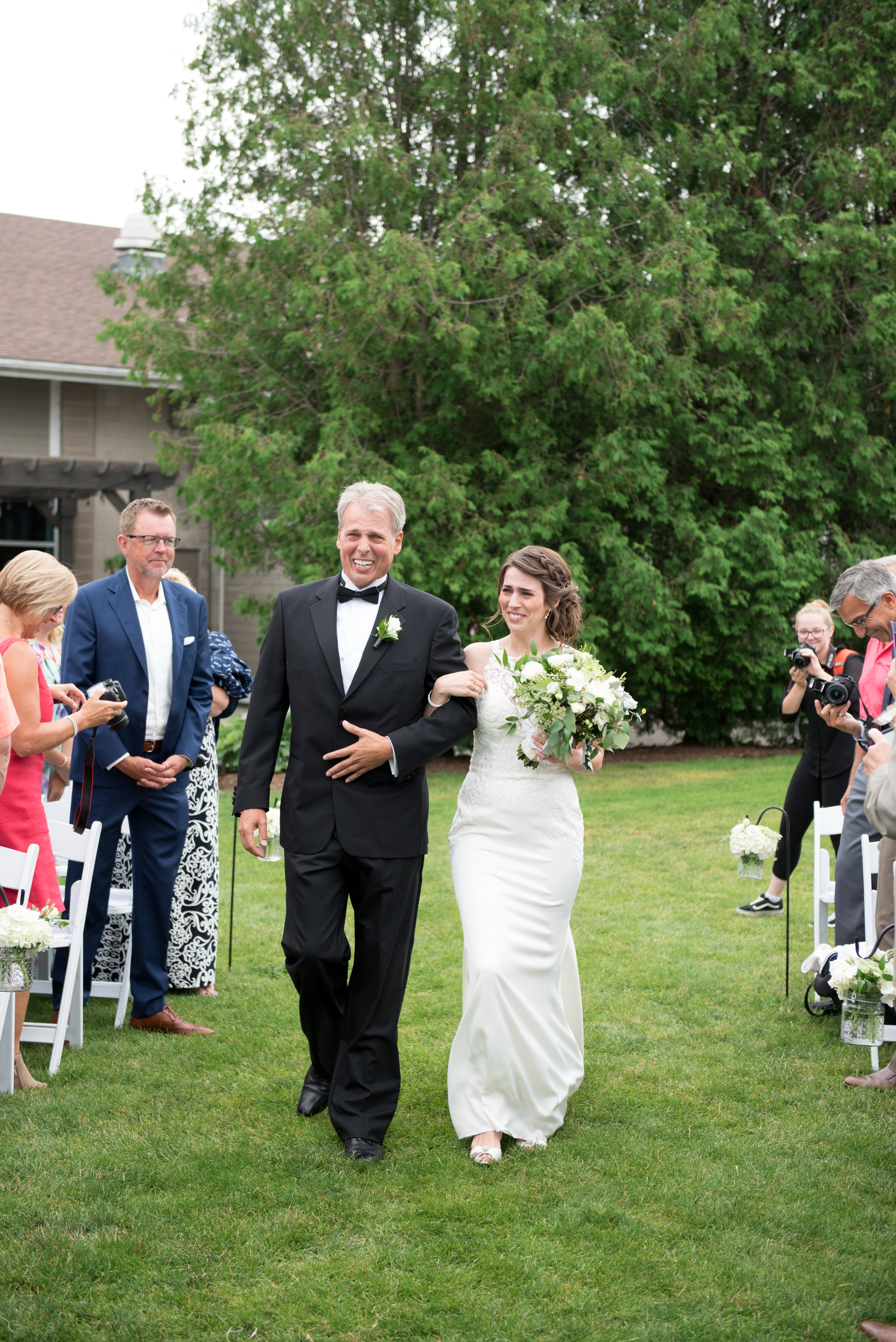 When the big day finally arrived, I couldn’t have asked for anything more amazing. I had been worried the whole week leading up to the wedding, as the weather forecast was calling for rain. Although the weather isn’t something that can be controlled, the SMGCC team helped to keep my nerves at bay by assuring me that they would do everything in their power to bring our outdoor ceremony plan to life, and that they would wait to switch to our indoor backup plan until the last possible chance. It ended up drizzling a bit right before our ceremony, but stopped just in time. During the ceremony, the sky was overcast and there was a slight coolness to the air, which was moody and romantic, and provided an unexpected relief given that our wedding was in the middle of the summer!